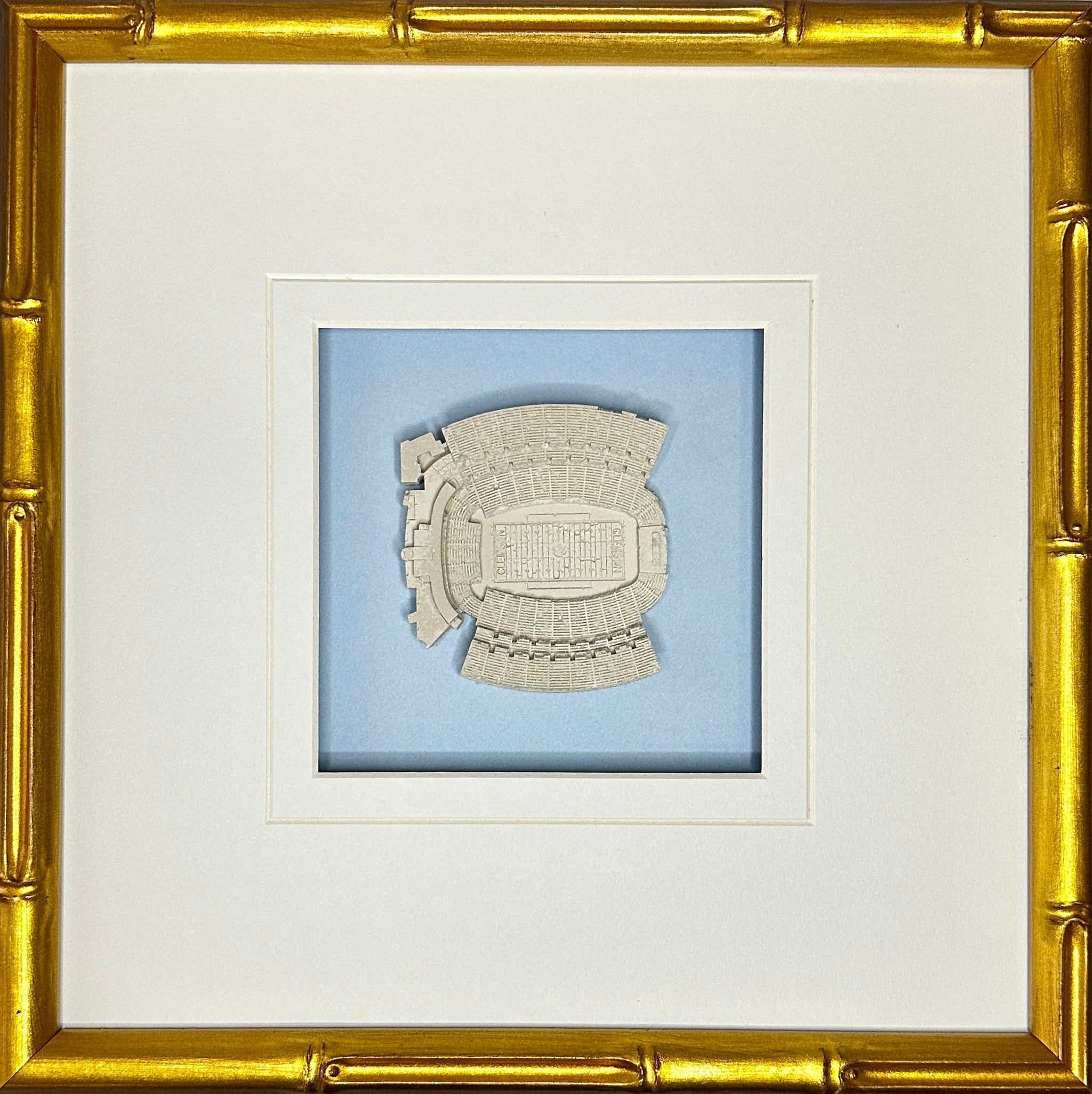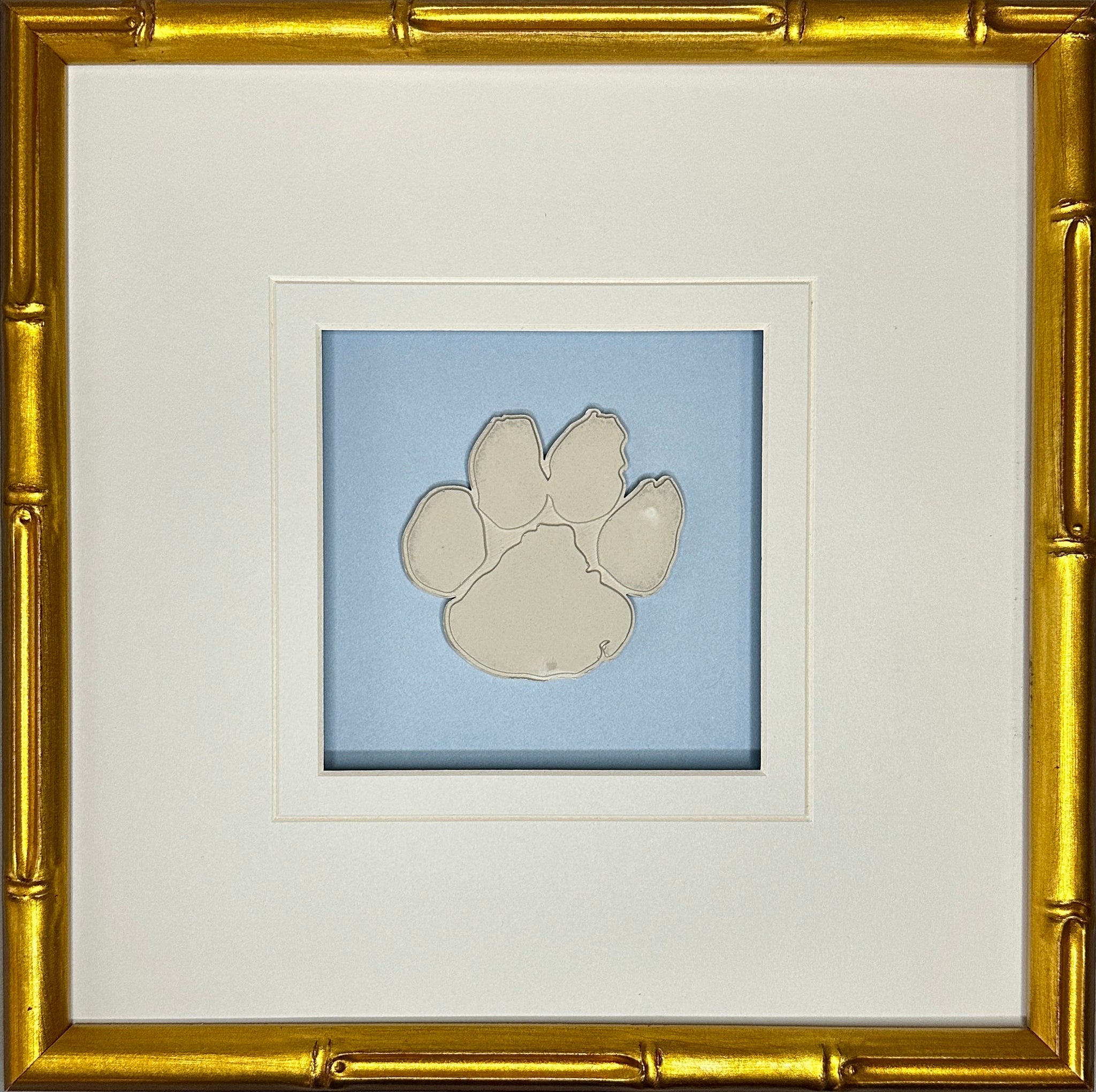 Set of four custom-made Clemson University-inspired intaglios, matted and framed in a glass front gold bamboo frame